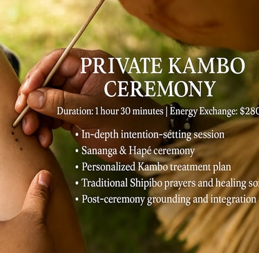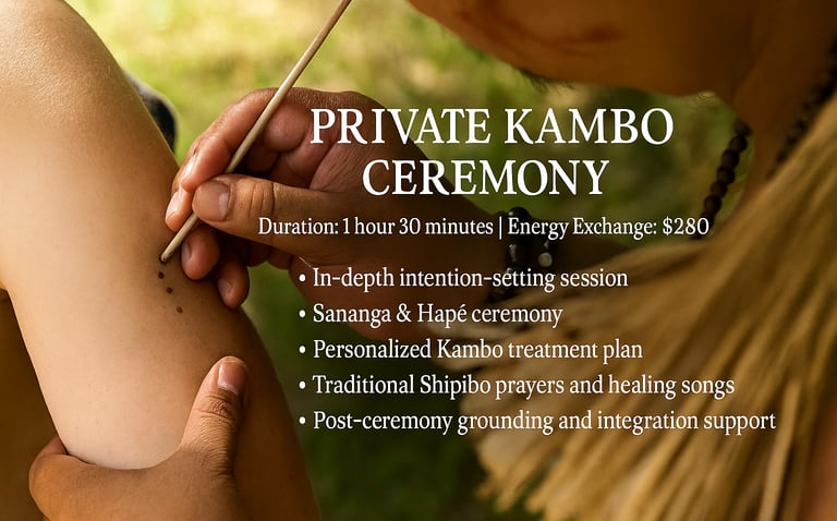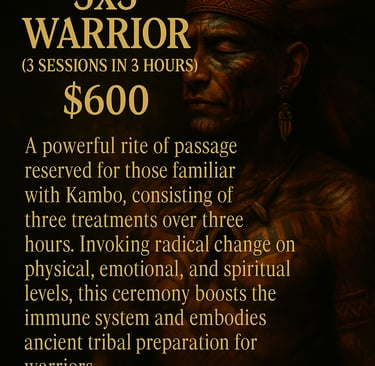 Kambo is a powerful traditional medicine from the Amazon, used by Indigenous tribes like the Matsés and Katukina to cleanse the body, clear negative energy, and enhance physical and mental strength.